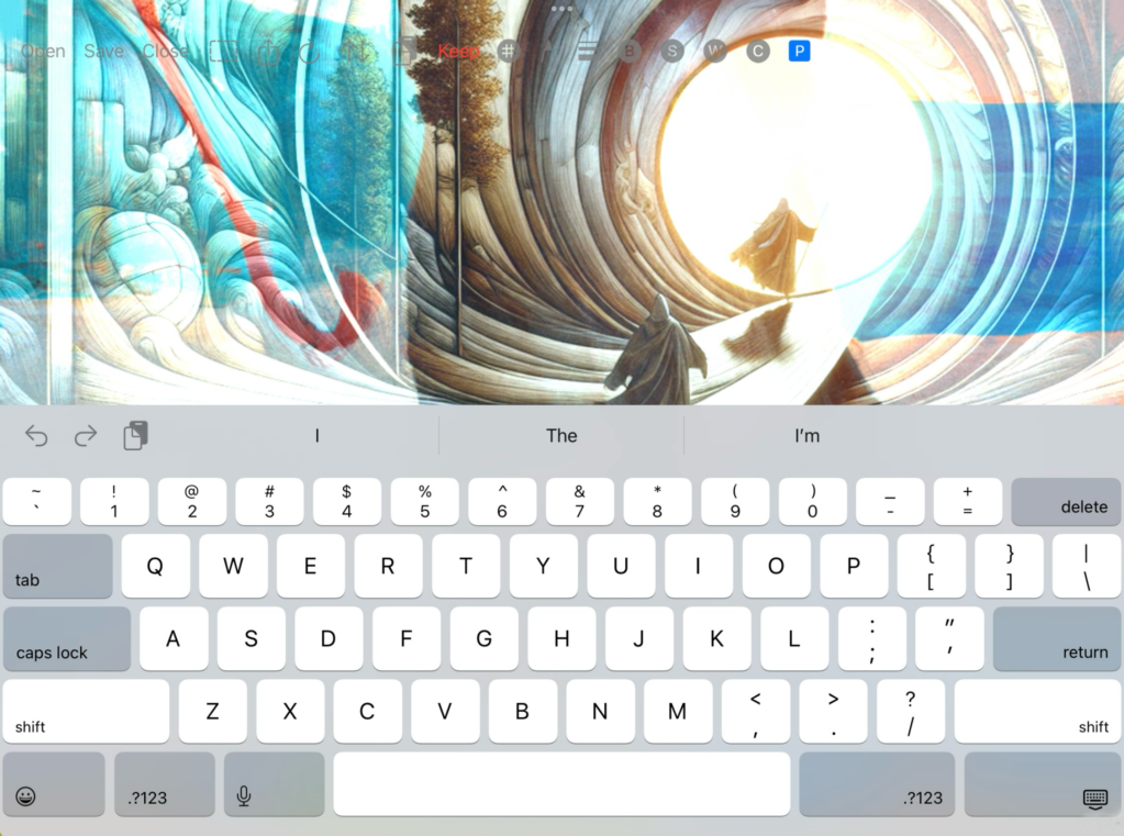 The keyboard will automatically open when Text mode is activated. To exit Text mode and keep all changes, press Keep in the upper navigation bar. To exit Text mode without changes, press the Undo button in the lower left navigation bar.