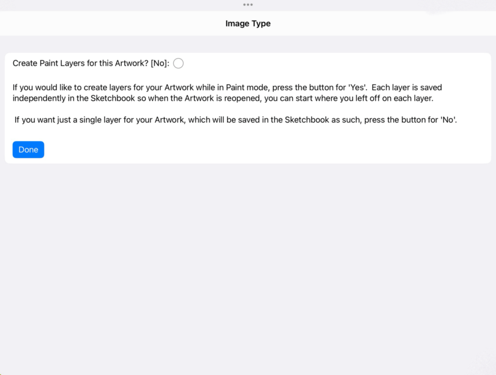 The Layer Type defines how the image will be handled in Paint mode, that is, can multiple layers (five total) be applied to the image. If the ‘No’ layers option is selected, then the image will have only one layer.