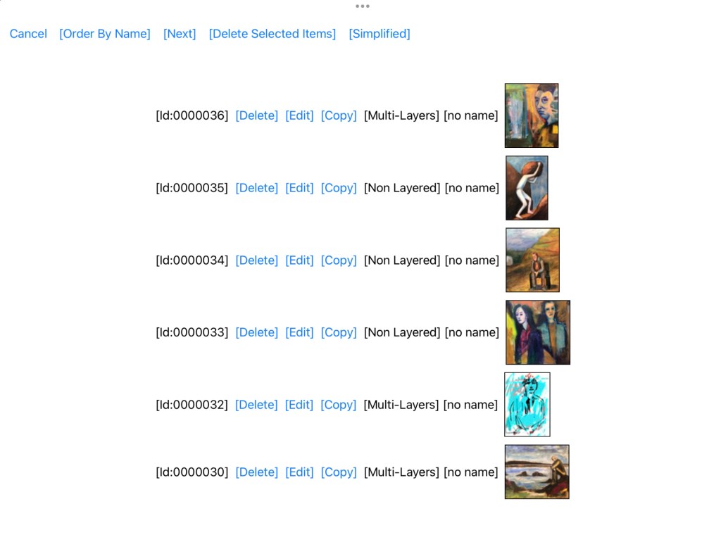 Choose the ‘Simplified’ button to get a list of artwork images only. The Simplified button can help make finding a specific artwork faster.