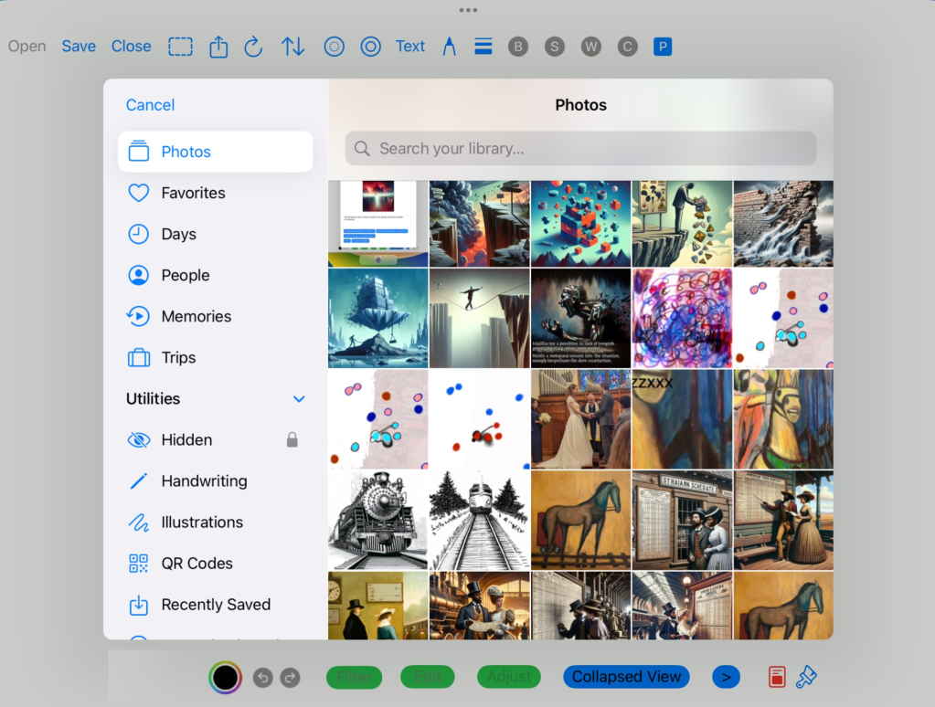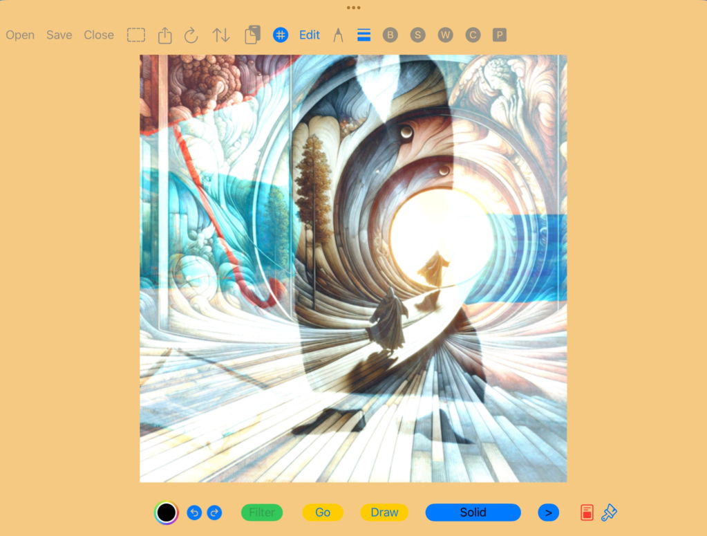 From the Collapsed View the user can navigate to screens which can apply Filters, Image Merges, Text, Edits and Paint..