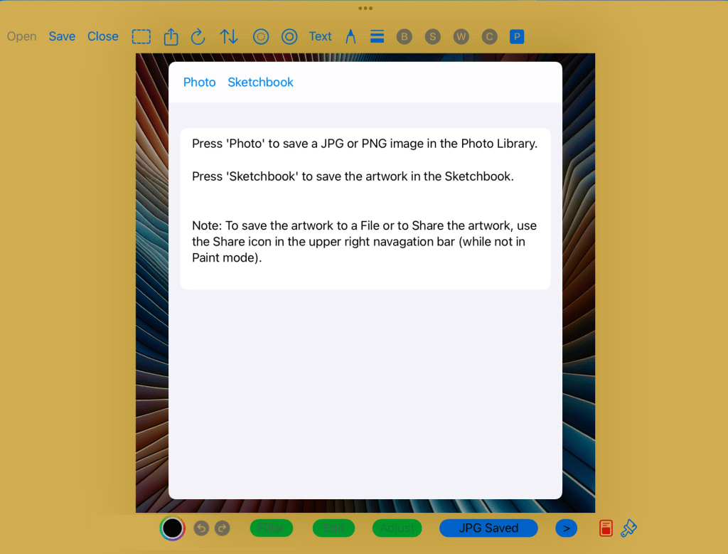 The layers still exist in memory and can be saved separately in the Sketchbook, if the Sketchbook option is selected in the Save screen (see below). The next time artwork is opened from the Sketchbook, all layers will be created in Paint mode from where they left off during the previous Paint session.